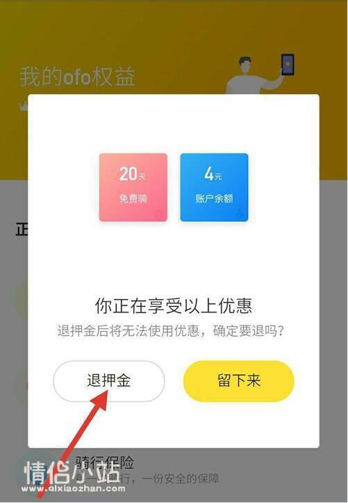 ofo全面取消信用免押金,用户可购买95元福利卡,继续享受免押金。否则就需要交199元押金才能使用,很多人就不愿意了,并且害怕押金交了,无法退回来的情况,那么,情侣小站小编就教一下大家,ofo共享单车怎样退押金?