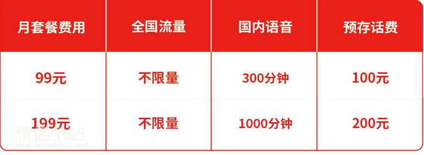 中国电信不限量套餐有2个等级,分别是:不限量99元套餐、不限量199元套餐