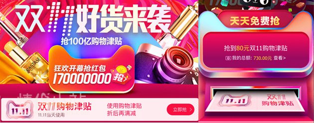 “双十一购物津贴”是专为天猫消费者开发的天猫平台通用型折扣产品,消费者可以通过购物津贴享受到消费优惠。