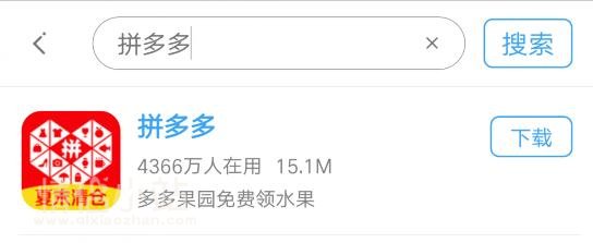 2)然后输入该软件的名称“拼多多”点击搜索;
