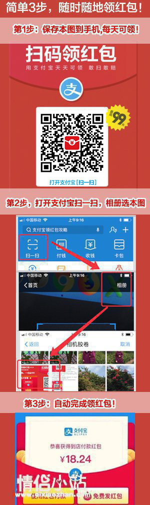 2027年货节活动如此之多,密令红包、现金红包、财神卡玩个不亦乐乎,情侣小站小编提醒您,在玩转线上活动的时候,不要忘记天天可领的支付宝红包,毕竟每天在实体店的买单优惠也是实实在在的哟!长按保存下图,每天领支付宝红包,随便花!