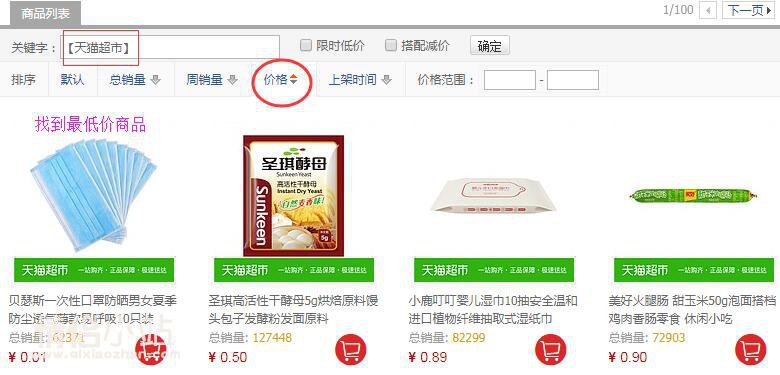 喜欢在天猫超市购物的用户经常为了凑满88元包邮而东找西找哪里有低价商品,今天情侣小站小编就来为您介绍一个便捷的方法,一下子就可以把天猫超市的所有商品按价格排序!